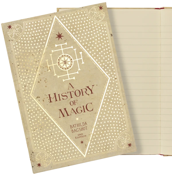 The History of Magic journal features gold foiled cover details and is complete with luxury gold foiled edges. The journal contains approximately 200 lined pages and comes with a ribbon page marker to mark your place, perfect for all aspiring Hogwarts students.