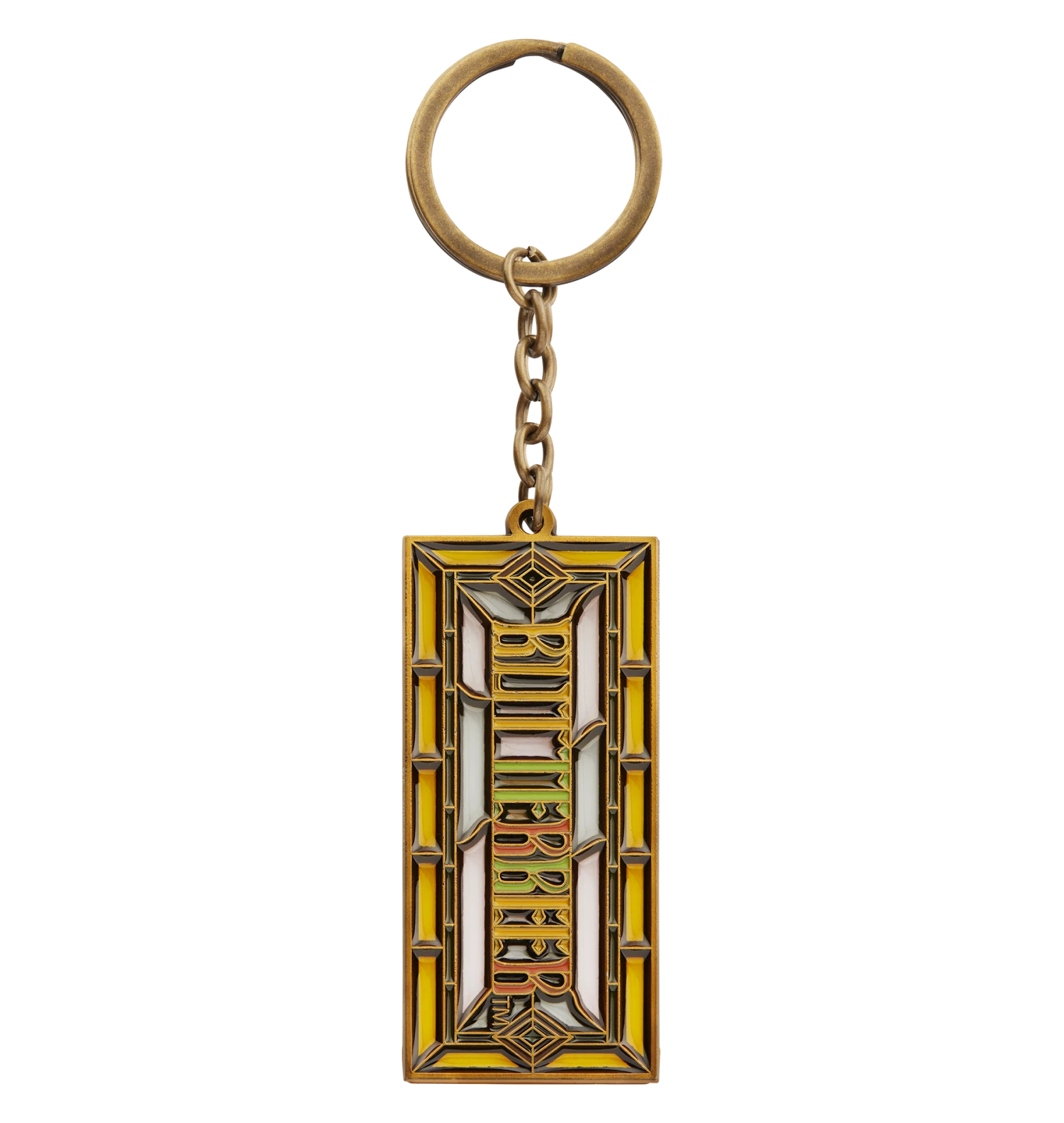 Add some magic to your souvenir collection with this exclusive Butterbeer keyring. The keyring features the word ‘BUTTERBEER’ in soft enamel, and is designed to give the appearance of a stained glass window.