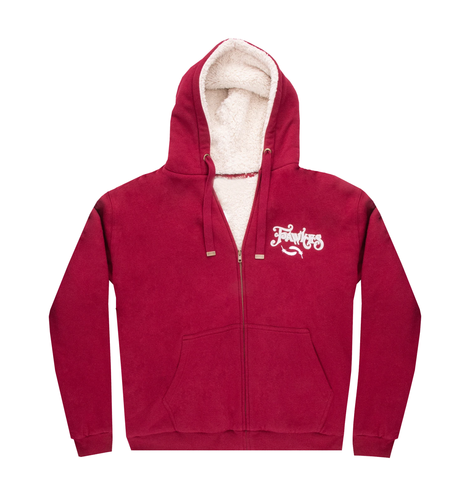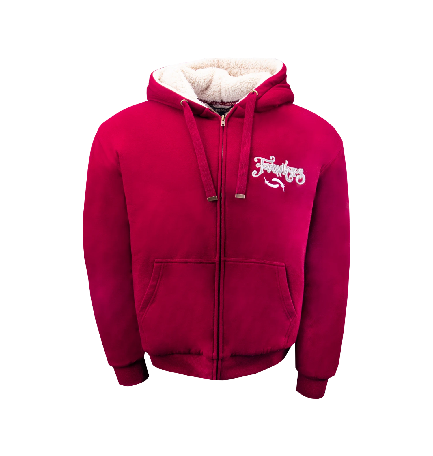 This exclusive crimson red unisex hoodie features a deluxe cream colored Sherpa fleece, which lines the interior of the body and hood. It provides a luxurious weight, texture and feel that will keep you both stylish and comfortably warm in the cooler months!