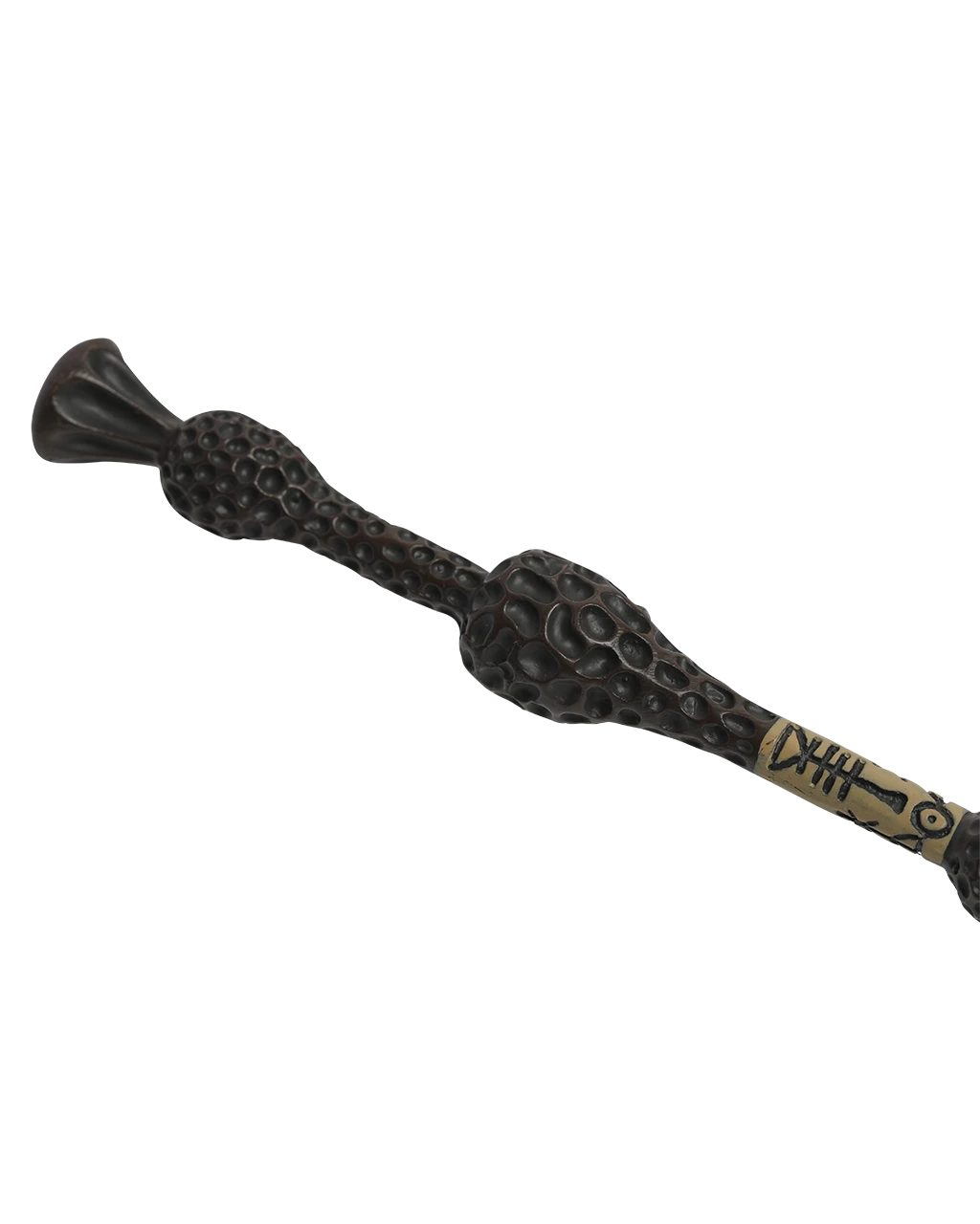 The wand measures approximately 15 3/4” in length. This wand is presented in a sleek, collectible wand box featuring the character name with decorative paper overlay. This authentic replica sculpted in resin, is a fragile collectible wand. Not intended for use as a toy.