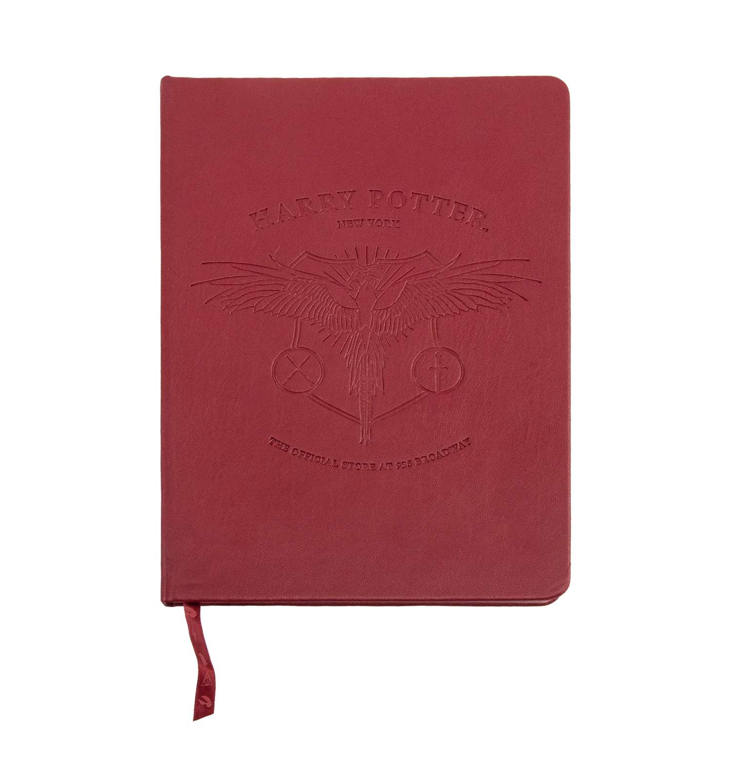Exclusive to the Harry Potter New York shop, this luxurious looking notebook will add a hint of magic to any home study! The burgundy red leather-look journal features a striking embossed graphic of Fawkes the phoenix on the front cover, with store branding reading “Harry Potter New York” on the reverse.