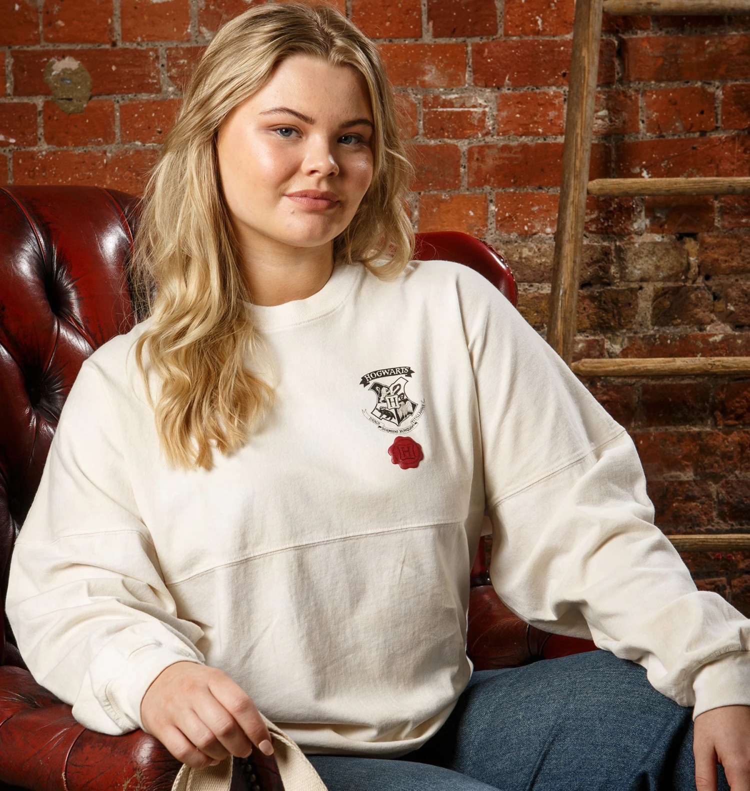 This enchanting jersey is the ultimate way for any Harry Potter fan to showcase their wizarding pride. Featuring a bold replica print of the iconic Hogwarts acceptance letter on the back, you’ll instantly feel like a part of the Wizarding World. Made with high-quality 100% cotton, this Spirit Jersey offers a casual comfort that is totally on trend. The loose and relaxed fit makes it perfect for everyday wear or cosplay adventures. The front of the jersey is adorned with the Hogwarts wax seal and school crest, proudly displaying your allegiance to the esteemed school of witchcraft and wizardry.