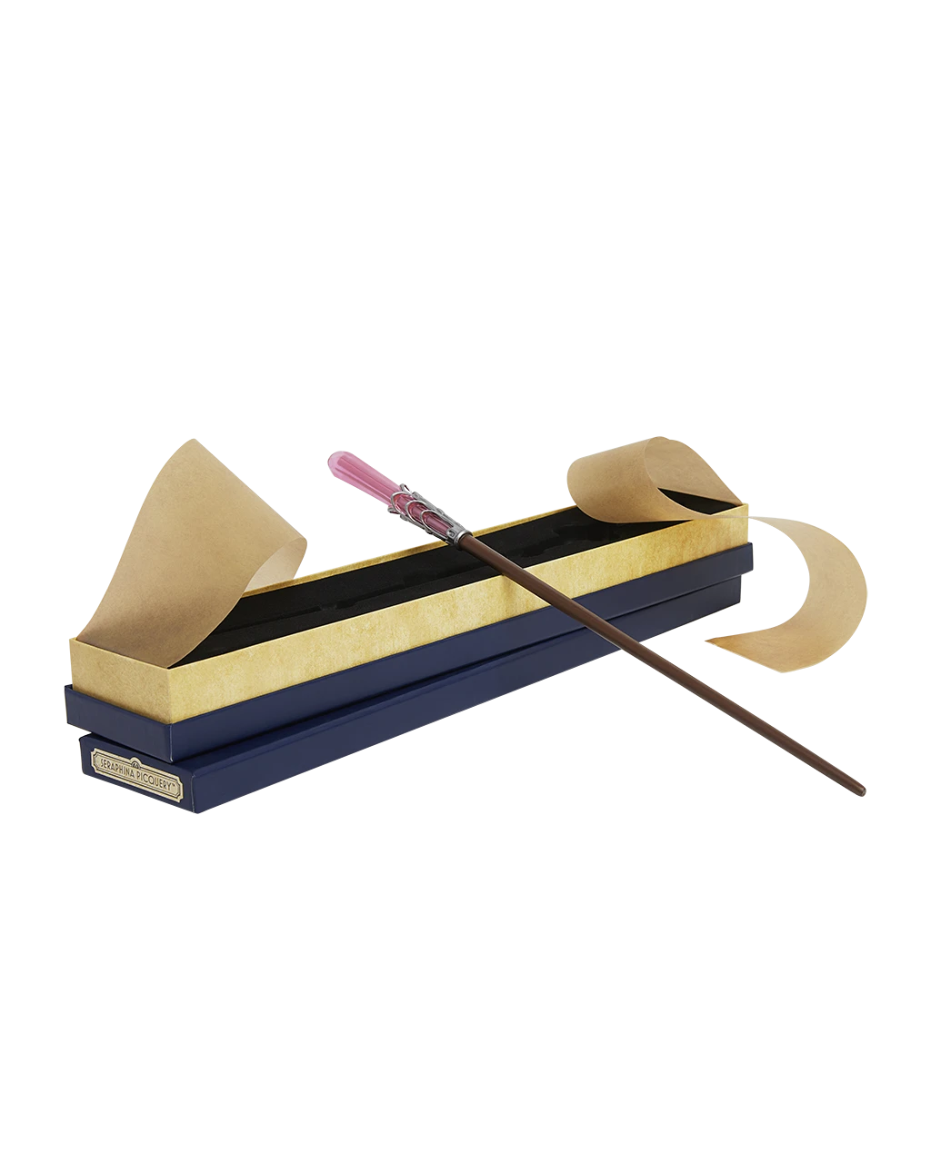The wand measures approximately 14” in length. This wand is presented in a sleek, collectible wand box featuring the character name with decorative paper overlay. This authentic replica sculpted in resin, is a fragile collectible wand. Not intended for use as a toy.