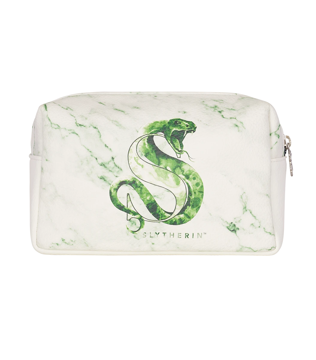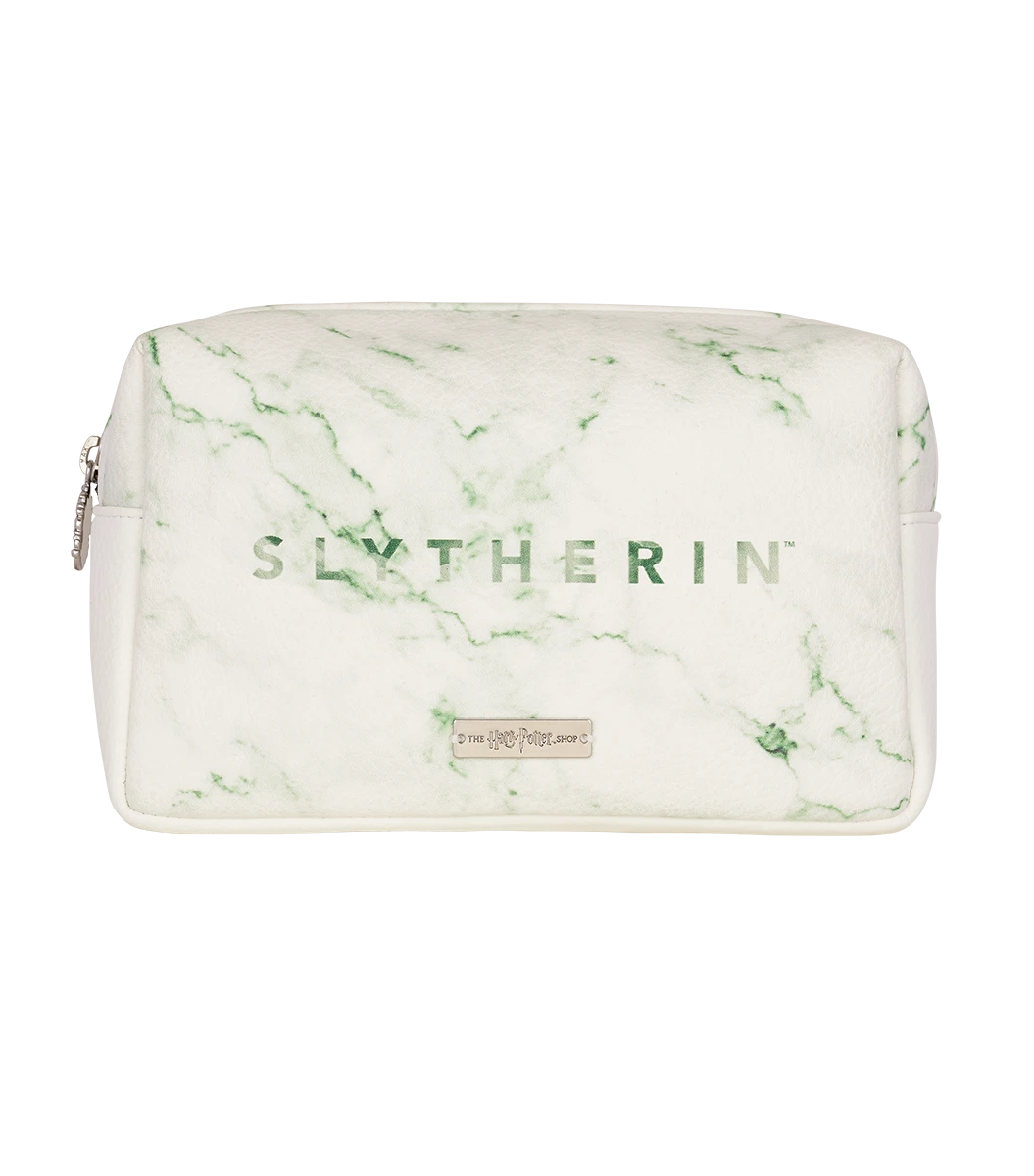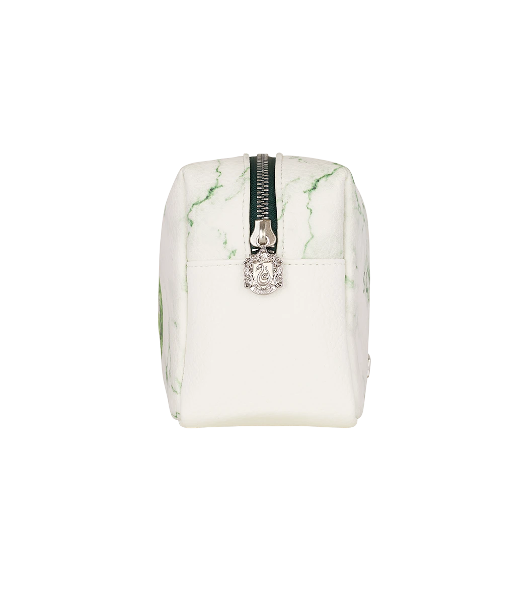 Inspired by Slytherin house pride is this unique Slytherin Cosmetics Bag. The bag features a white and emerald green marble effect in a PU leather material and is complete with a silver zip detailing the Slytherin house crest.