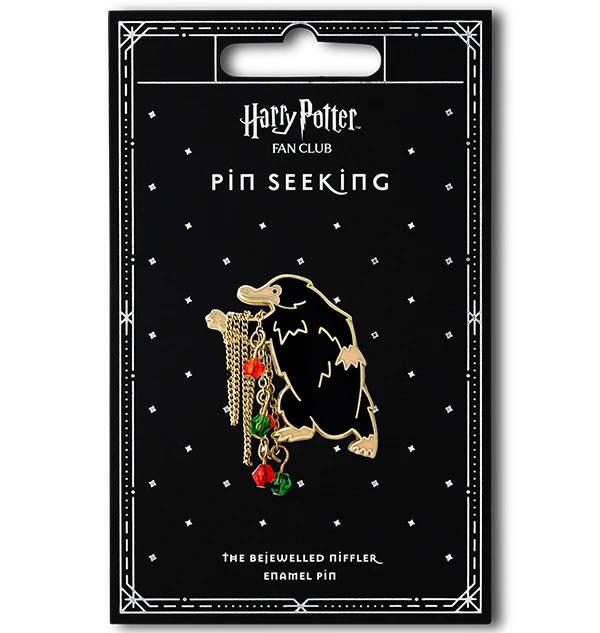 Seek the ultimate mischief-maker and cutest kleptomaniac around with the cheeky Bejewelled Niffler enamel pin from the Harry Potter Fan Club Pin Seeking collection.